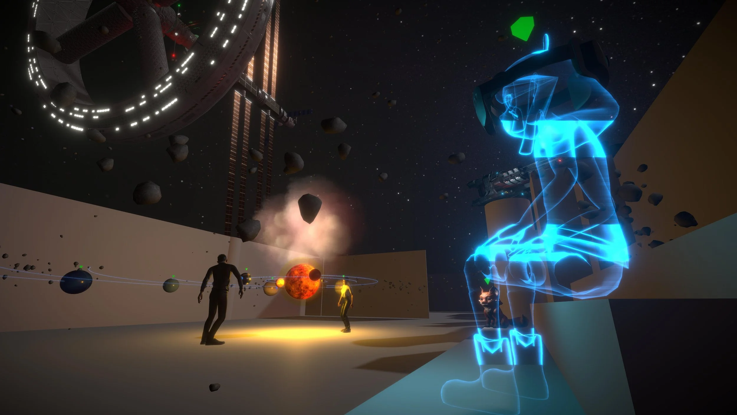 우주적 자아(YOUniverse)를 찾아가는 여정: 사용자가 가상 공간 속에서 안내자 '유니'와 상호작용하며 퀘스트를 수행하는 체험형 XR 콘텐츠입니다.